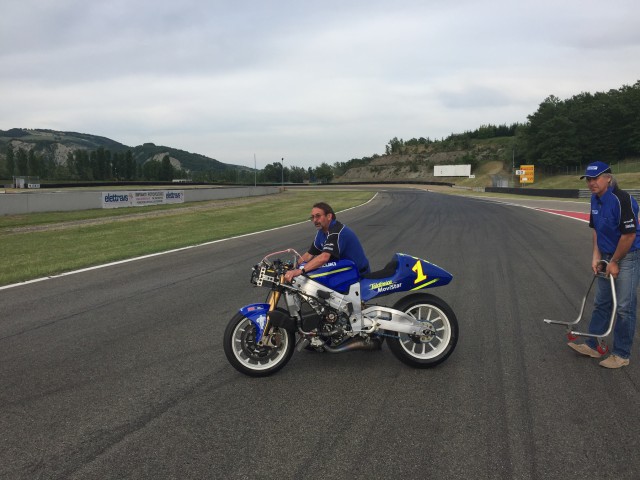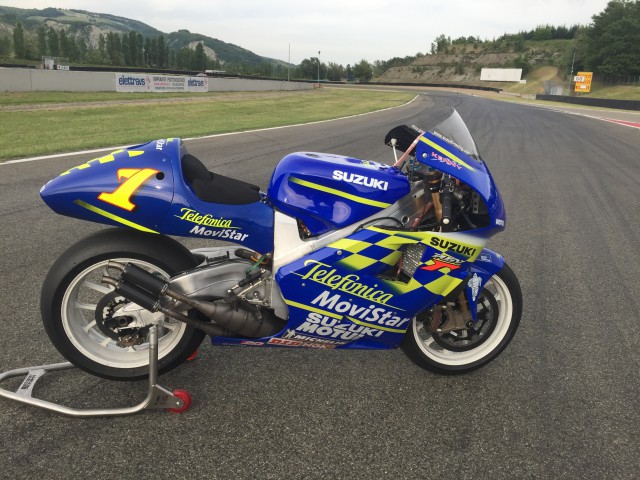Suzuki XR45 RGB500 Me aboard the Ex Randy Mamola RGB 500 Suzuki at Varano de Melegari near Parma Italy, May 2009