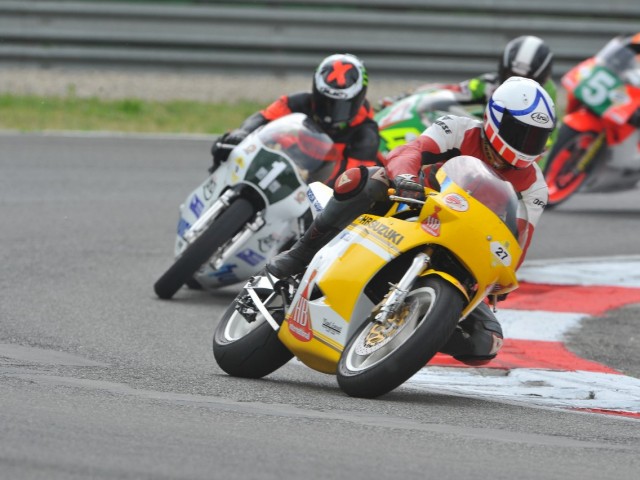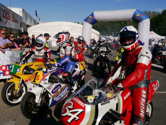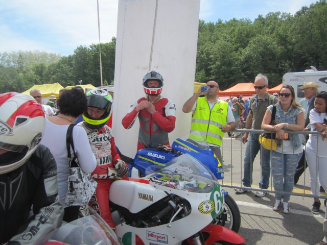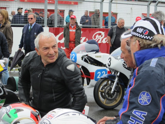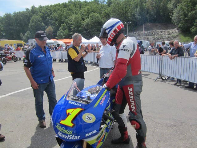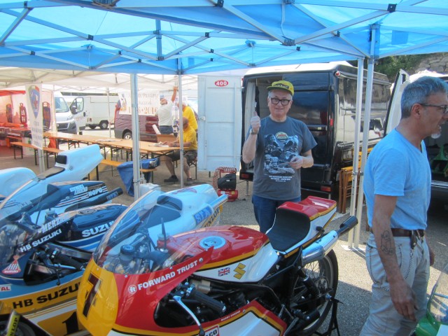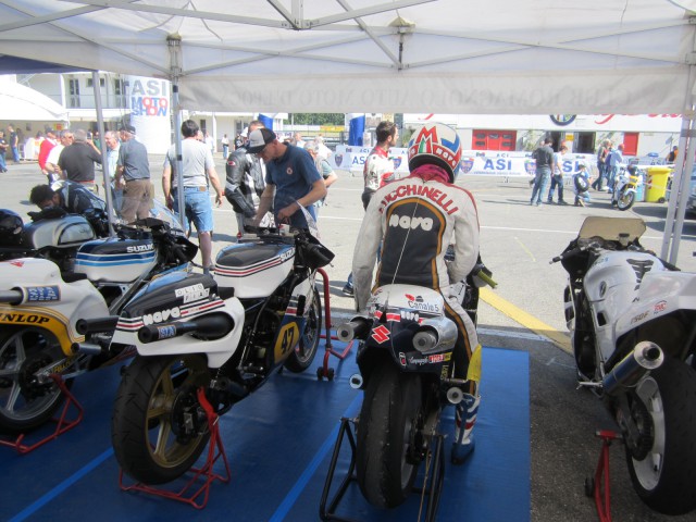 Varano De Meligari Enjoying this superb event and this wonderfull XR45 Suzuki RGB500 ex randy Mamola, with its owner, a thank you to steve for letting me ride this superb machine