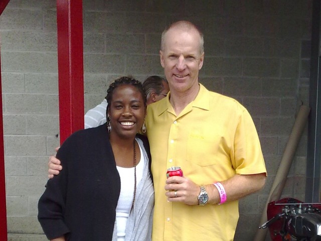Will Hartog Here he is thanking Steve Wheatman The Team owner for a great ride, Will was going for a record number of laps, he was realy enjoying himself, the crownd love this very talented Dutchman
