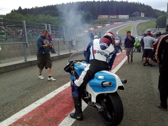 Spa 2010 Dave petersen on the Boet van Dulman Suzuki Also Marco Luccinelli factory Suzuki