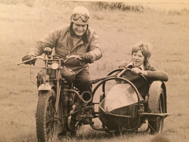 Teppi Teuvo Lansivuori Suzuki TR750 The great rider from Finland, a true champion of a two stroke in the 1970.s with Big Geof Our Anchor man and ex Proffesional Rugby player from the Saints Northampton talking with Brian onother team mechanic, Also our team Photographer