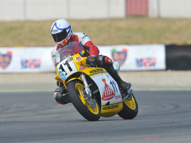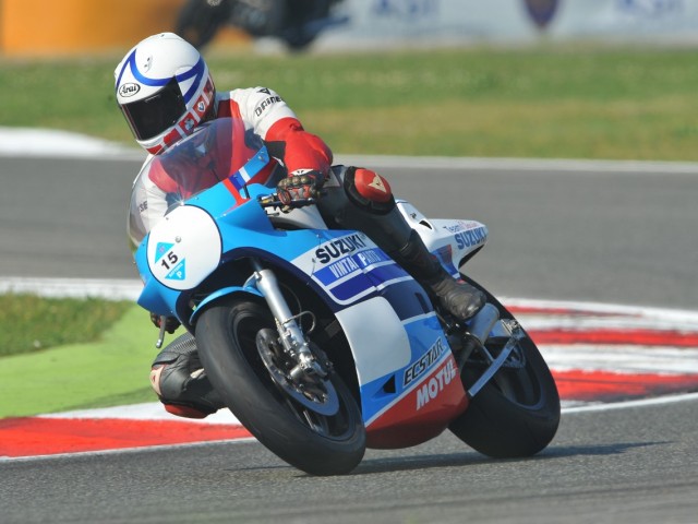 EX Franco Uncini Suzuki XR45 RGB500 Me aboard the Ex Franco Uncini RGB 500 XR45/5 Suzuki at Varano de Melegari near Parma Italy, May 2009