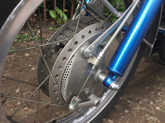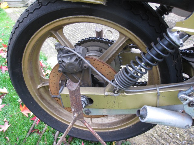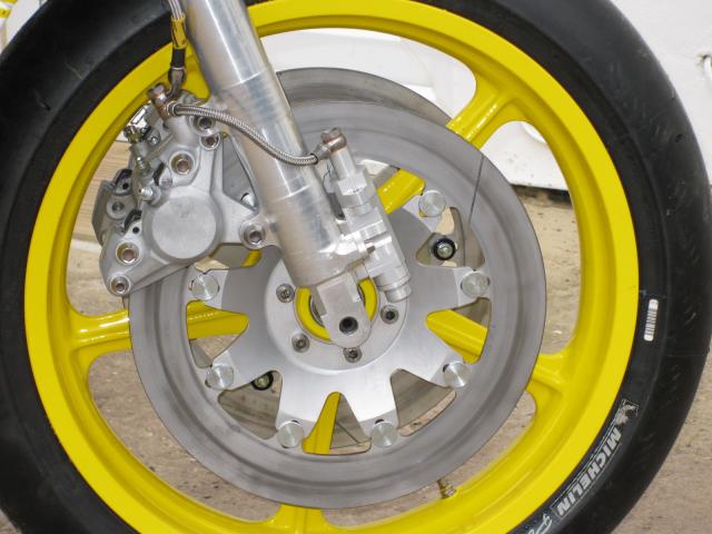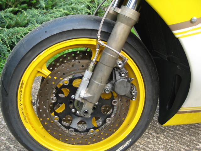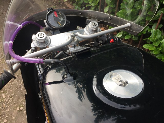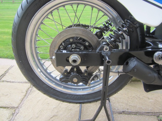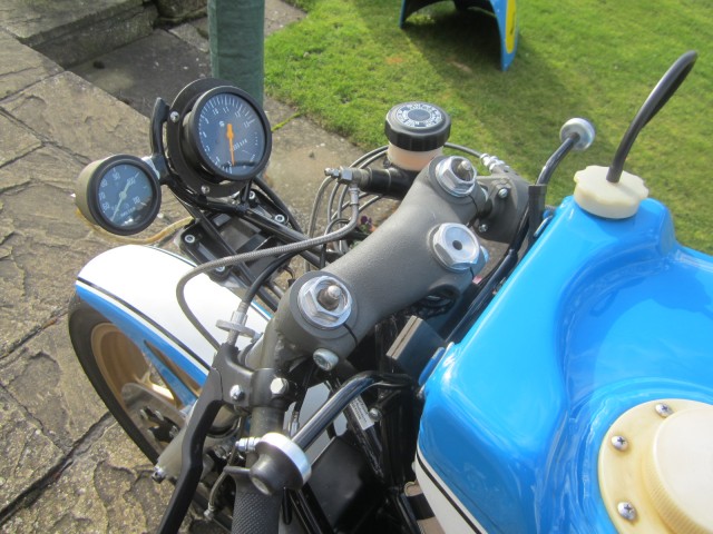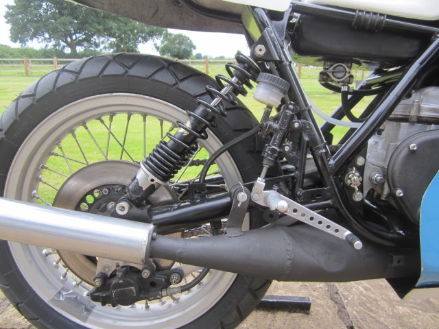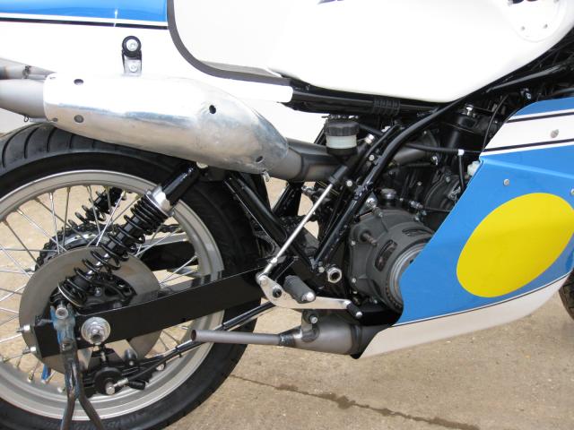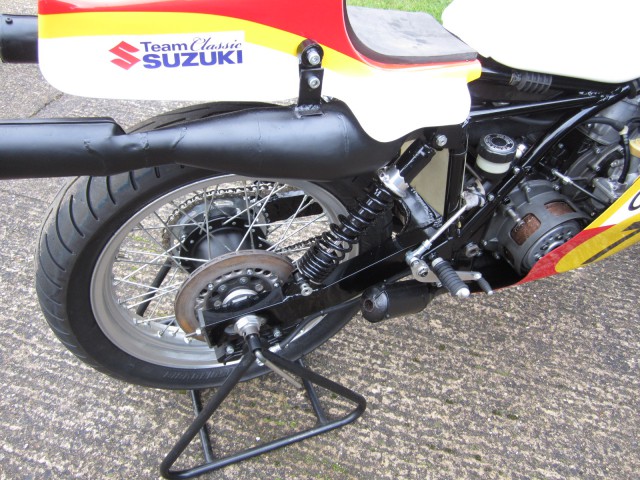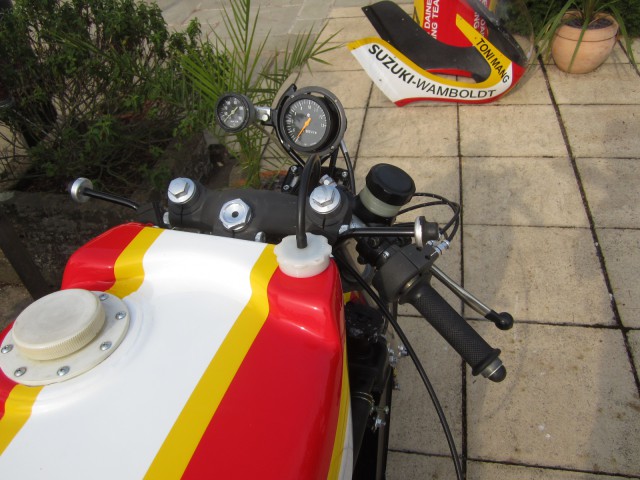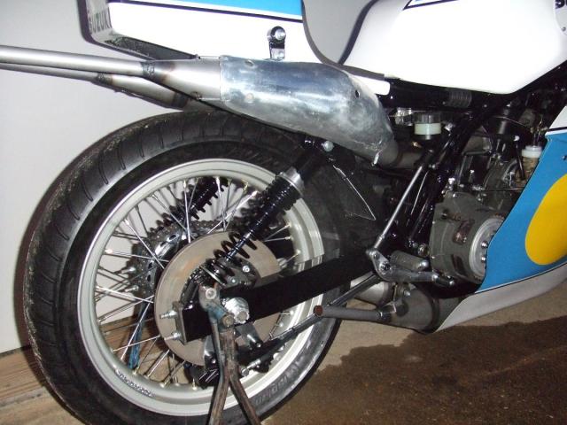 1975 Ex Stan woods Suzuki TR750 watercooled as you can see it has new Marvic/Campag type wheels which means you can use the bike, superb disc brakes and Suzuki Calipers