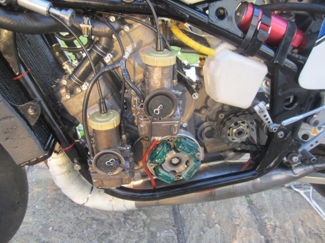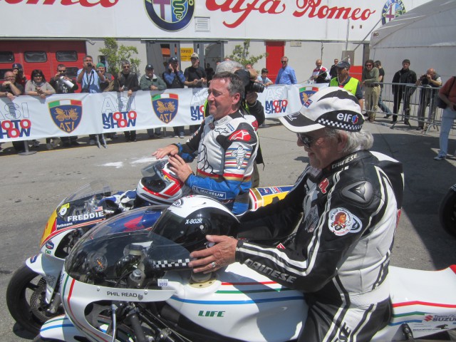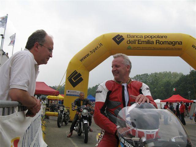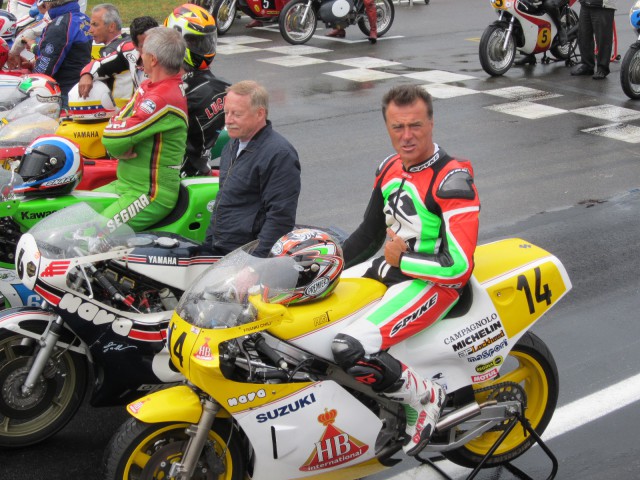 Marco Luccinelli, Phil Read World Champions Two great World champions of very different times , as you can see ready for the off with marco Looking at his 1981 Championship machine with Paul Bolton warming it up, and myself warming Phil's 1976 Suzuki MK1 with the very loud stinger exhausts