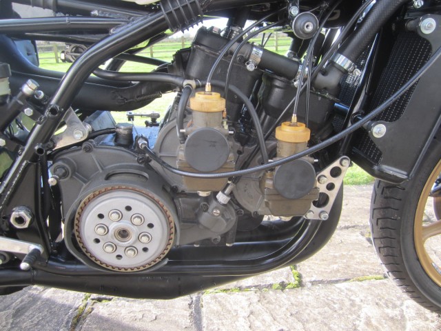 1984 EX Boet Van Dulmen Suzuki MK9 This machine bought from Holland 4 years ago, it has some special parts I have been doing some research, the 1984 Boet van Dulman Machine has his initials engraved into the Cylinders BvD, it seems MK9 but there is some thing strange either the Stroke or the cylinders, they are very similar to XR45 but very different to MK7 MK8 it has an extra scavenge port, it seems he had a good season and finished 8th in the World championship Reserved