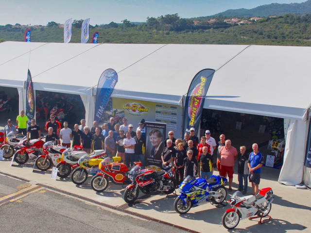 Estoril classic event October 2023 2000 Suzuki Kenny Roberts jnr RGV500 this great Classic car event, at the estoril circuit, Amicale Spirit of speed were invited to run some special machines in one 20 minute session each of the three days, for us it was in memory of our great freind and founding member of Amicale with Bernard