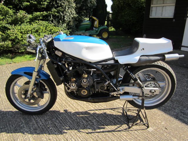 1983 Suzuki RGB500 this Disc Valve square four cylinder racing Machine , this the secound year of the stepped engined machine, this nice example in the blue and white sold 2005