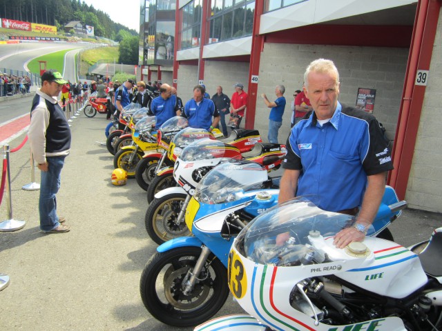 Team Classic Suzuki at Spa Bikers Classic More photos of the team and riders on the SuzukiRG500 section. Wil Hartog,Brother David Griffith, Steve Griffith and Phil Read,