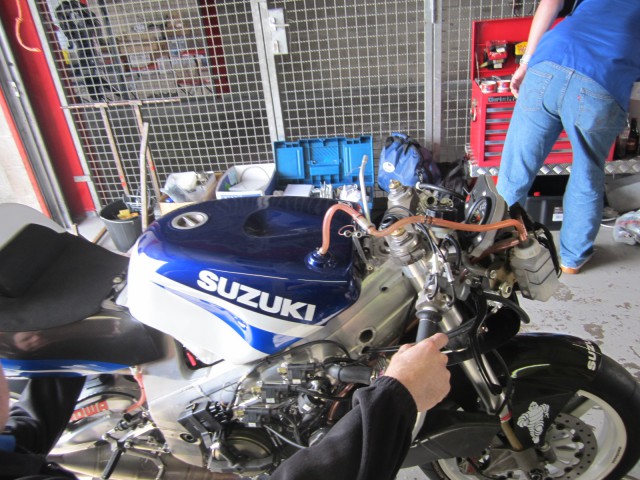 Eastern Creek Australia classic event with Classic Team Suzuki Frankie Chilli and Jeremy McWilliams Here Nathan prepares the RGB500